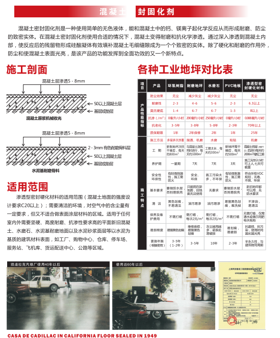 公司以“腳踏實地,盡善盡美”為服務宗旨,憑借專業的施工隊伍,先進的施工設備,豐富的工程施工經驗,為您提供最優性價比的地坪系統設計方案及經久耐用的質量保證,為您節省寶貴的時間和金錢。根據不同的使用功能需求、現場施工條件、地域差異等因素,公司主要涉及產品分為:混凝土密封固化劑系列、環氧樹脂地坪漆涂裝系列、PVC卷材系列、運動球場涂裝系列、停車場交通標識系列、巖棉保溫防火復合板外保溫系列等。